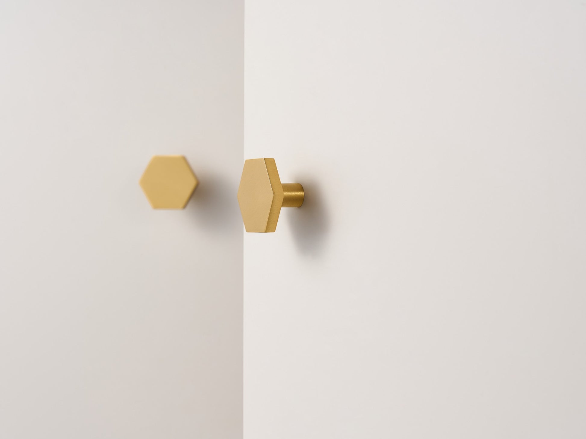 Contemporary Hexagonal Brass Cabinet Knob - 30mm