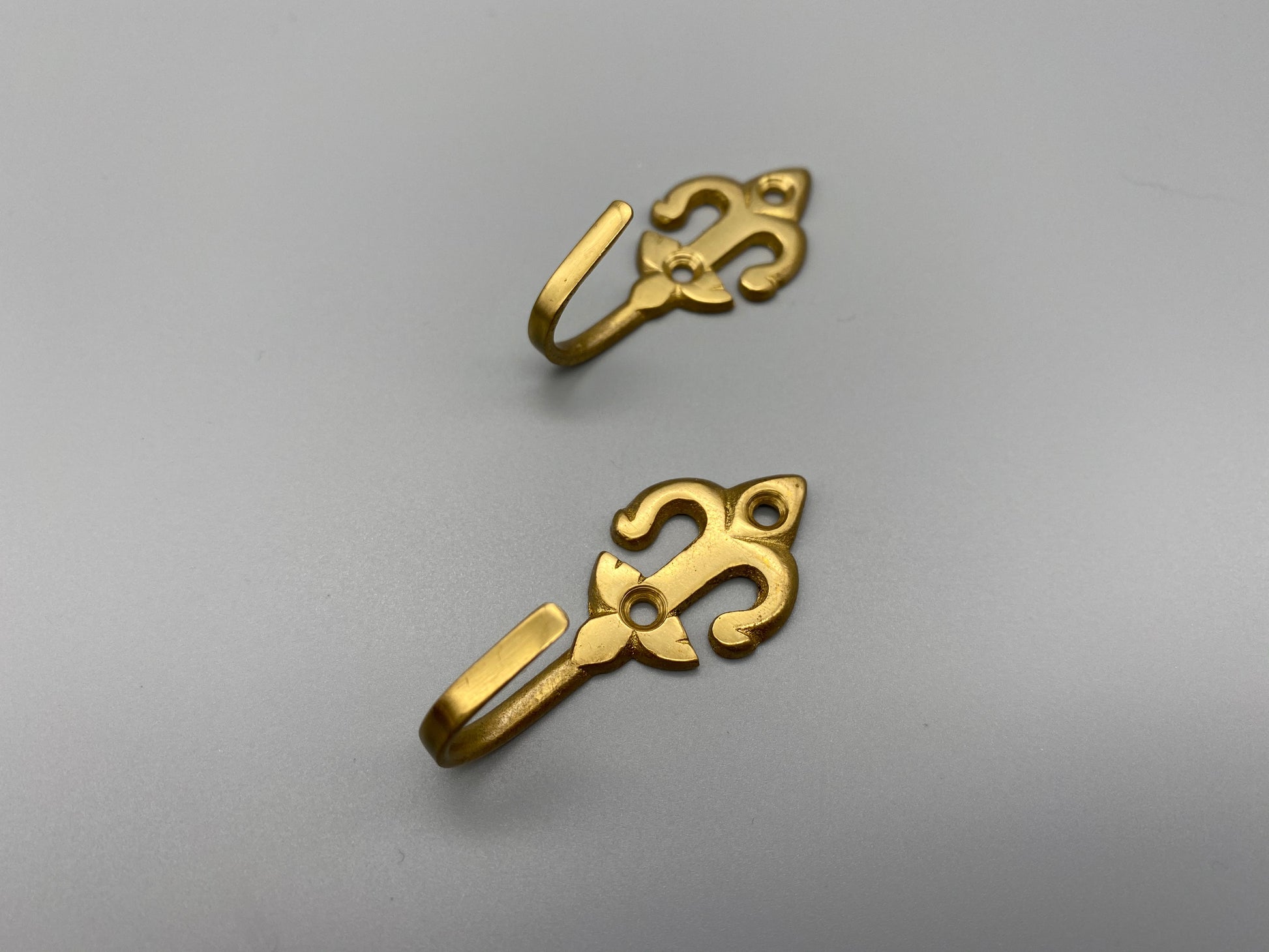 Pair of Brass Curtain Tieback Fluer De Lis Hooks - 50mm