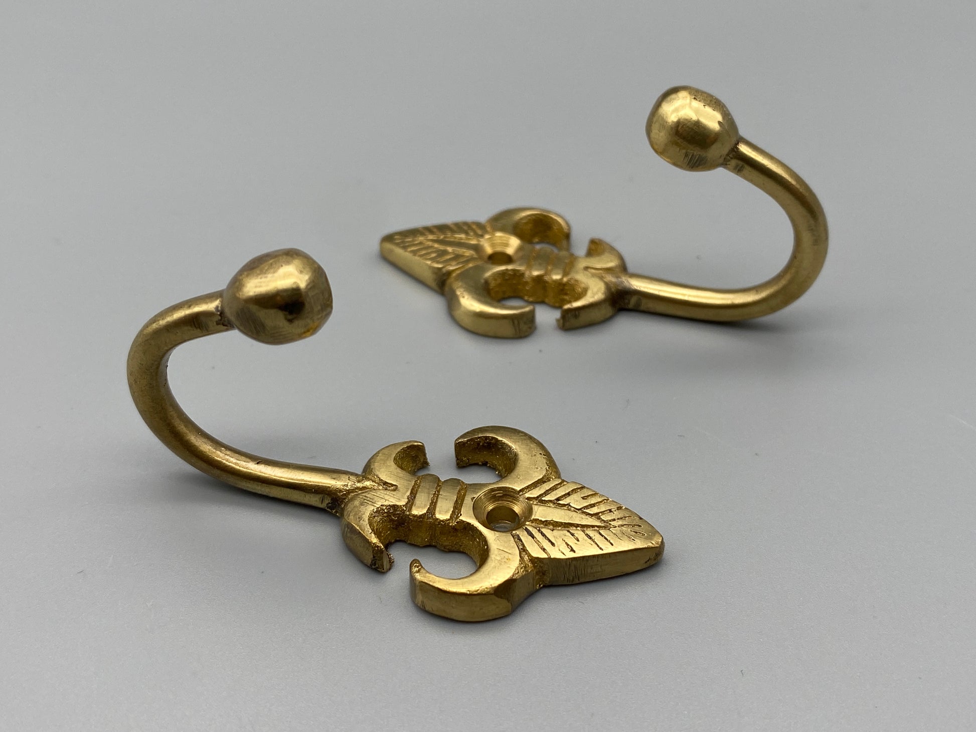 Pair of Brass Curtain Tieback Fluer De Lis Ball End Hooks - 60mm